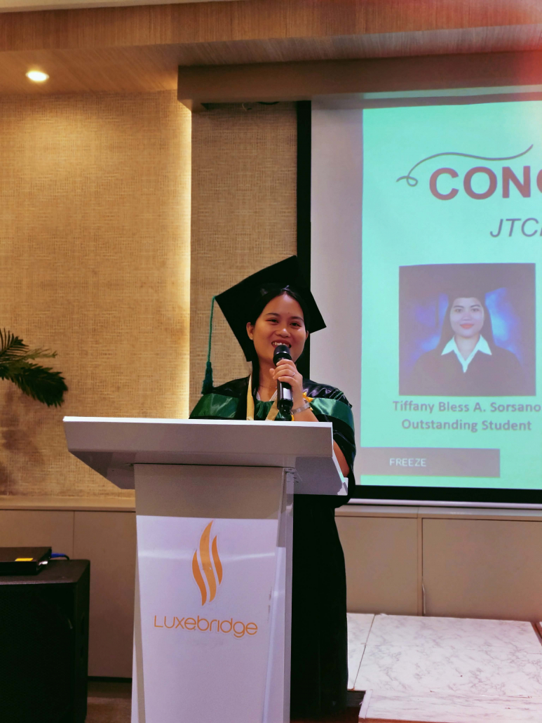 One of the most moving moments of the ceremony was the short message shared by outstanding student Tiffany Bless A. Sorsano. In her heartfelt testimony, she declared: “Kung ikaw gin tawag sang Ginoo, indi ka gid ka palagyo.” (“If God has called you, you cannot run away from it.” )